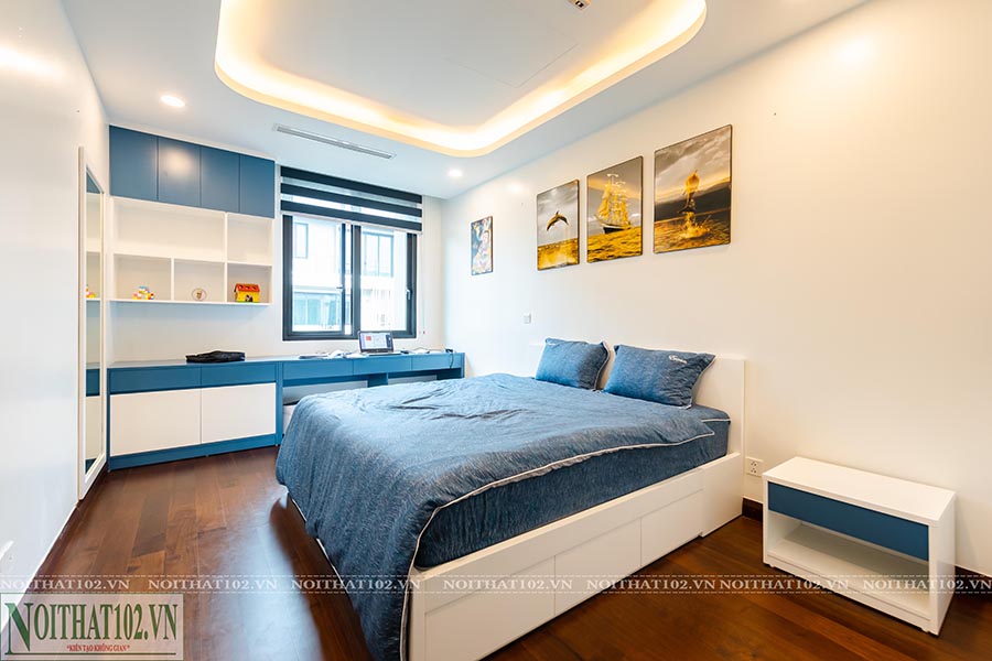Sau khi bản thiết kế được duyệt, đội ngũ kỹ thuật của Nội Thất 102 tiến hành thi công toàn bộ công trình theo đúng phối cảnh. Các sản phẩm được gia công tại xưởng, sử dụng kết cấu lắp ráp để đảm bảo tính linh hoạt, dễ lắp đặt và bảo trì.