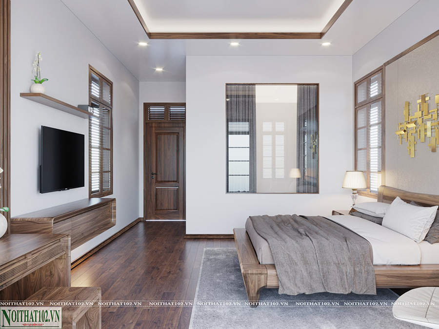 Cải tạo nhà phố bằng nội thất gỗ óc chó nhà chị Cúc – Dự án nâng cấp không gian sống do Nội Thất 102 thực hiện, gồm hai khu vực chính: phòng khách và phòng ngủ. Công trình được làm mới theo phong cách hiện đại, sử dụng gỗ óc chó tự nhiên làm vật liệu chủ đạo để tăng tính sang trọng và độ bền cho toàn bộ không gian.